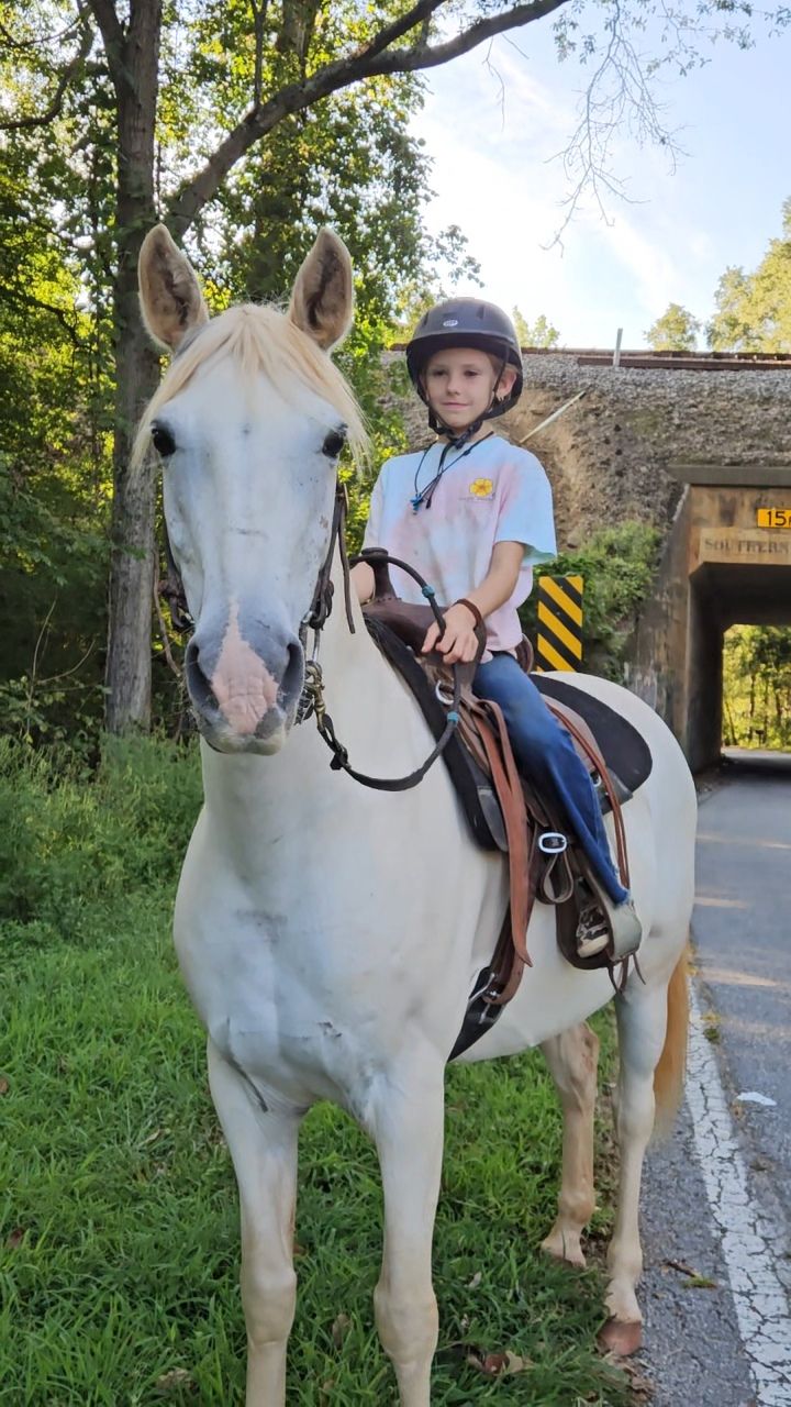 Cotton Candy 2013 Gray Tobiano Paint Mare. 14.2 hds. WTC. Picks up leads. Very safe and gentle. Easy to ride. English, Western, Bareback and Trails. Great lesson horse or kids horse or confidence builder. Vet check on file and available. Barefoot. Sound. No vices. Also ridden on the road with traffic by a kid. Westminster SC But shipping can be arranged anywhere. Matching Happy Homes Since 1994.